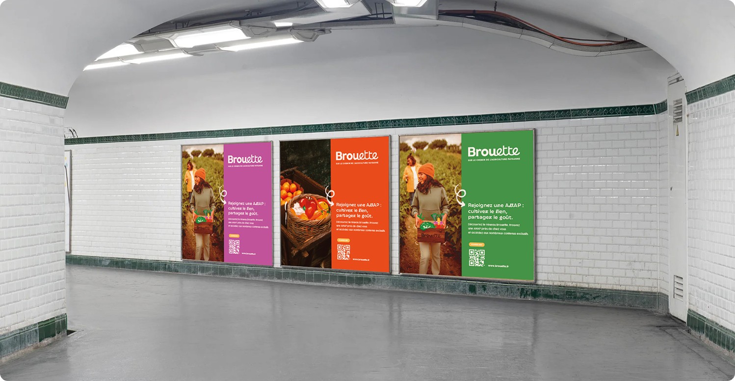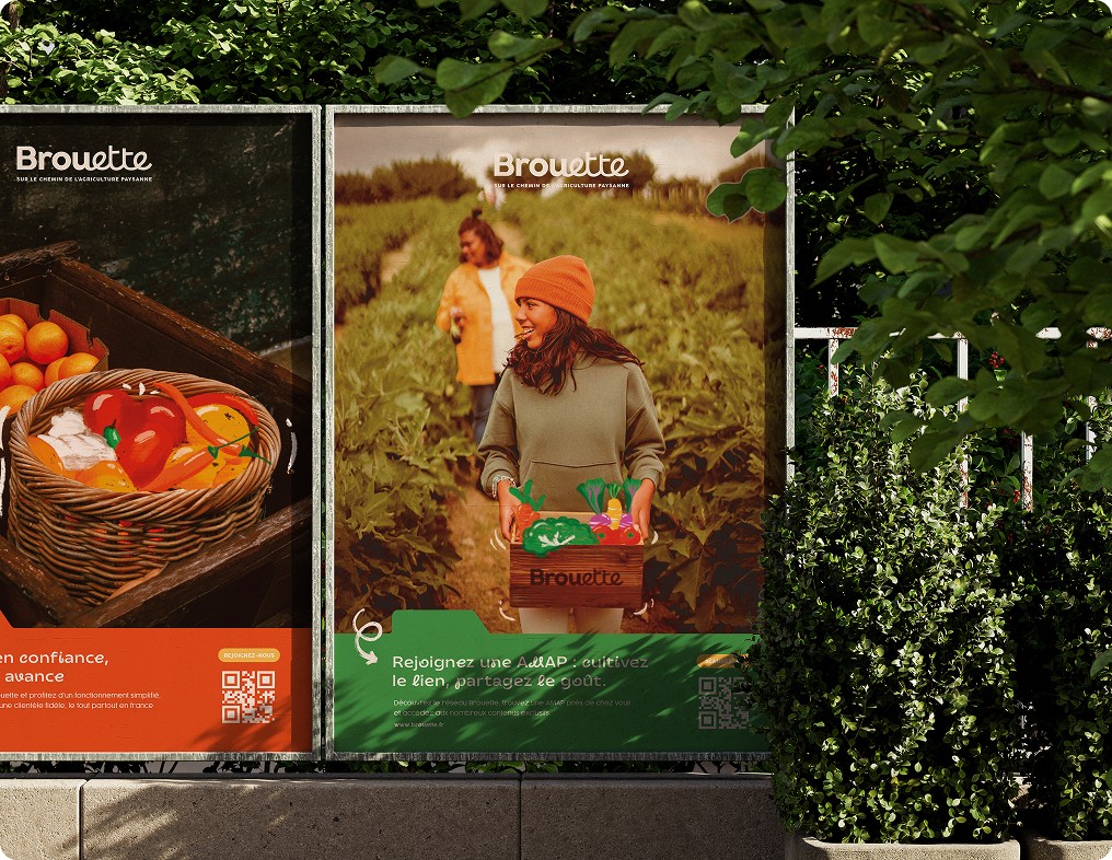 À côté de cette plateforme, nous avons imaginé plusieurs supports de communication pour accompagner le lancement de Brouette :